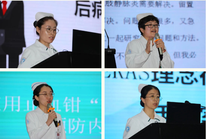 在上报的36个实践案例中,护理部经过初评后选取全科医疗科、康复医学科、内分泌科等8个科室的实践案例进行现场汇报。汇报人员精神饱满,以临床需求为导向,结合护理工作实际,运用现代化护理理念进行了精彩的汇报,护理人员不断进取、积极向上的精神风貌给院领导、评委及护士们留下了深刻的印象。