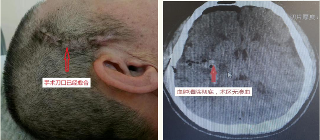 手术采取显微镜下小骨窗微创开颅手术的方式进行,血肿清除很彻底,术中出血少,副损伤小。