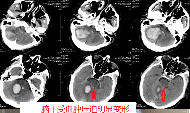 老年男性患者,72岁,患者于入院前大约三个半小时突然出现头痛、头晕,恶心呕吐,伴有肢体无力,被家属运至我院急诊科,行头部CT检查明确诊断:小脑出血,小脑半球出血量巨大,压迫脑干,随时有死亡的危险。