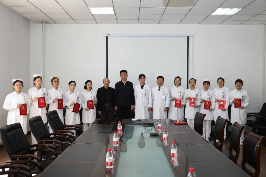 会议最后,来访领导与我院领导班子共同为我院获得富拉尔基区“优秀护士”代表颁发证书及奖品,并与全体获奖护士合影留念。