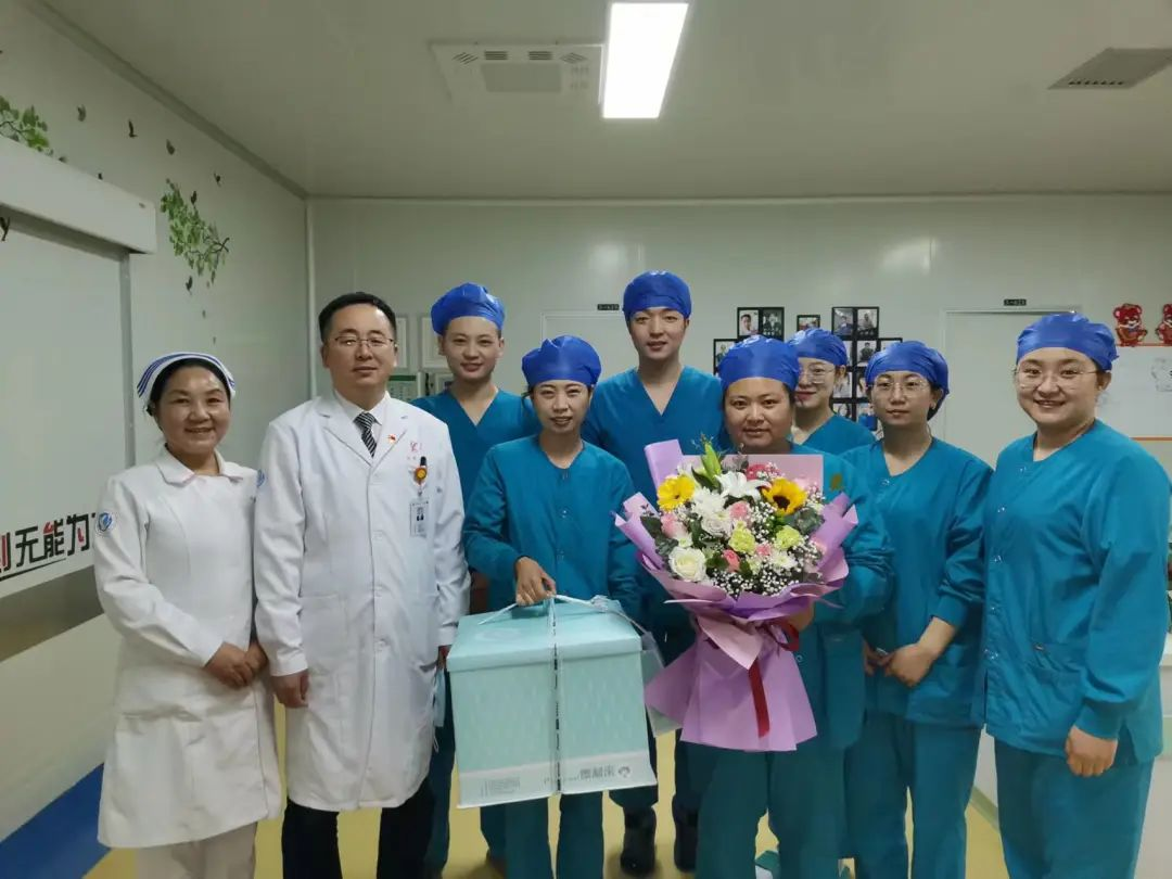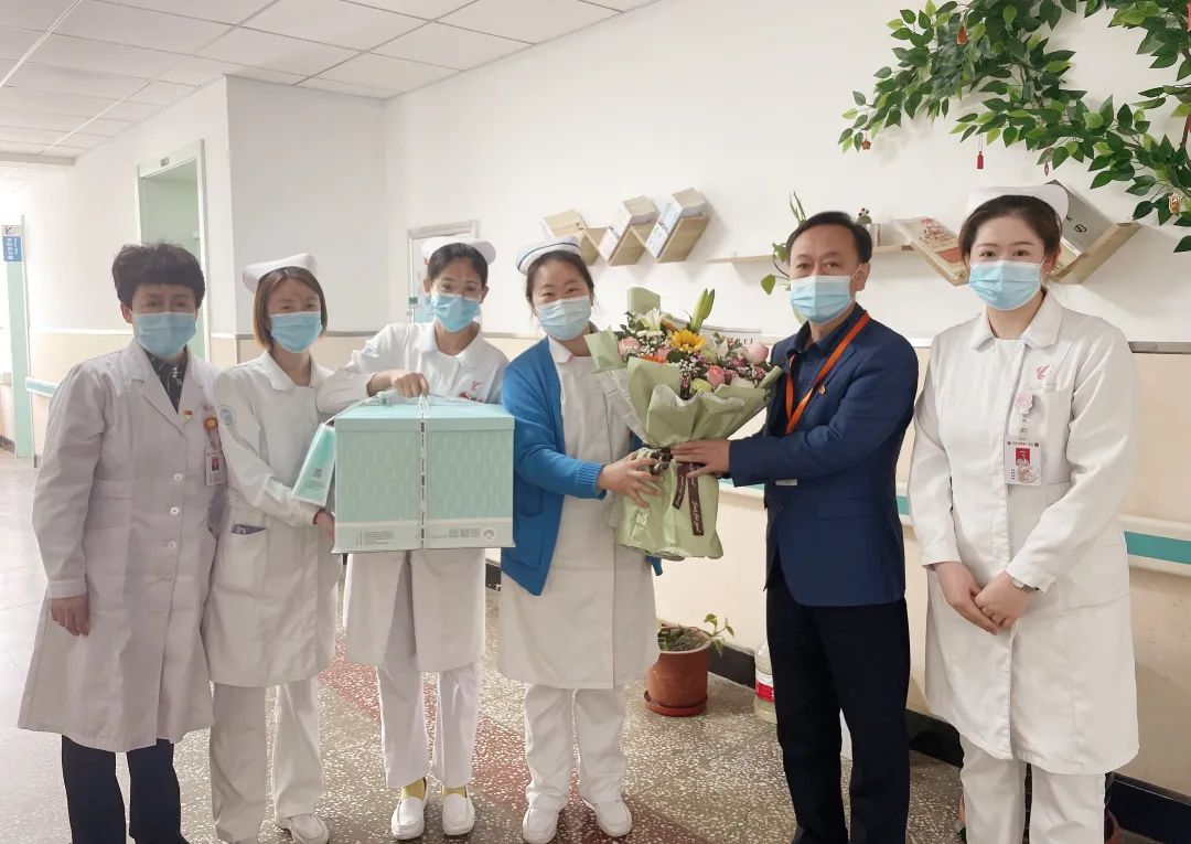 党委书记刘晖为护理同仁送鲜花和蛋糕