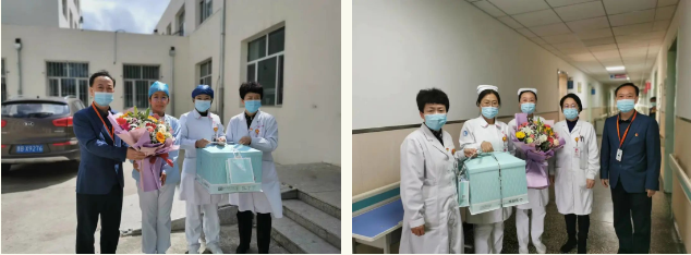 院长、党委副书记李忠原为护理同仁送鲜花和蛋糕