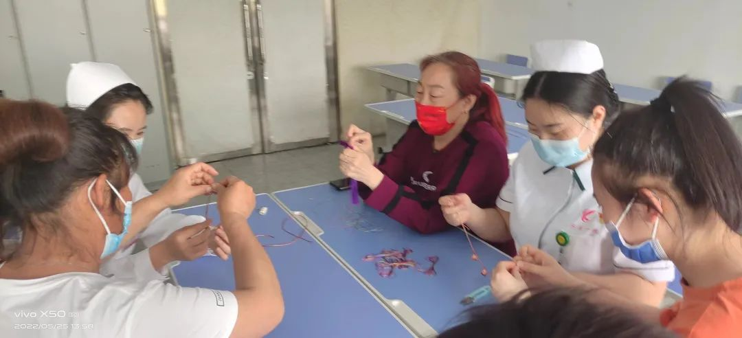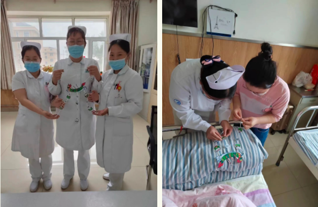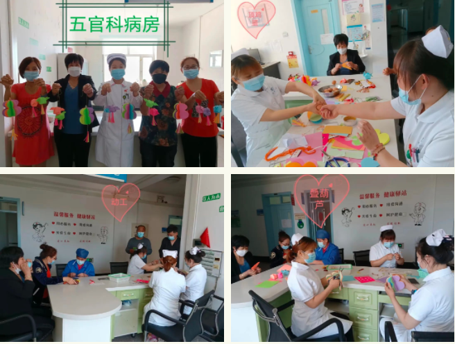 活动前夕,医护人员热情高涨,纷纷利用午休时间,收集、购买各种原材料,与科室患者一起,共同制作五彩线、葫芦、版画、粽子等手工艺品,两天之内就完成了几十件作品。