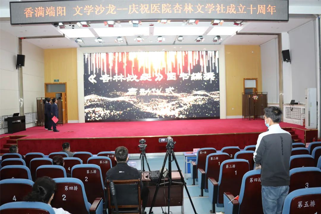 授旗仪式后,举行了图书《杏林战疫》编撰委员会的成立仪式。李院长介绍说,杏林文学社成立十年间,医院先后出版了《杏林春晖》《杏林春潮》《大医魂》等图书刊物,今天,医院正式成立《杏林战疫》图书编撰委员会,这将是我院抗击新冠疫情的真实写照,是杏林文学社的又一个文学结晶。满满的书香,也是把此次活动主题定义为“香满端阳”的初衷。