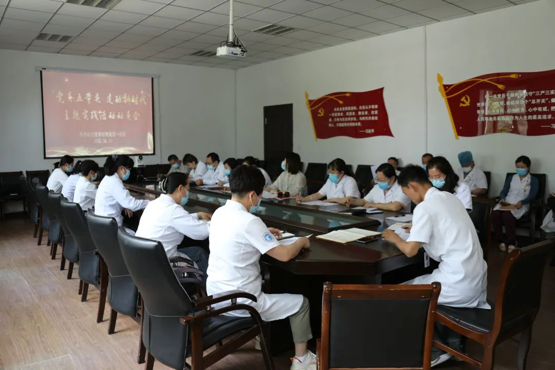 党委书记刘晖作动员讲话。刘书记强调各党支部要将主题实践活动与当前开展的能力作风建设年活动紧密结合起来,紧紧围绕中心工作,统筹谋划,一体推进。针对此次实践活动,刘书记提出三点要求:一是抓政治引领、落文件精神。号召广大党员要有实实在在的工作成效和实时放不下的责任感,在推动医院高质量内涵式发展中创新突破、换道超车、无中生有、跳起摸高。二是抓学思践悟、提质增效。各党支部要加强理论学习、业务学习,以学识丰富自己,用技术服务百姓,推动党建工作与教学、科研工作相融合,促进医教研协同发展。三是抓理想信念、促舆论宣传。各党支部要将“党员五带头,建功新时代”主题实践活动与全院机关“能力作风建设年”活动紧密结合,抓住“关键少数”,以支部书记带动支部党员,以党员带动全院职工,充分发挥党员的先锋示范作用,人人都是活动宣传员,提能力,转作风,带动全院职工鼓足干劲,克服困难,爬坡过坎,滚石上山,踏踏实实为医院突破发展贡献力量。