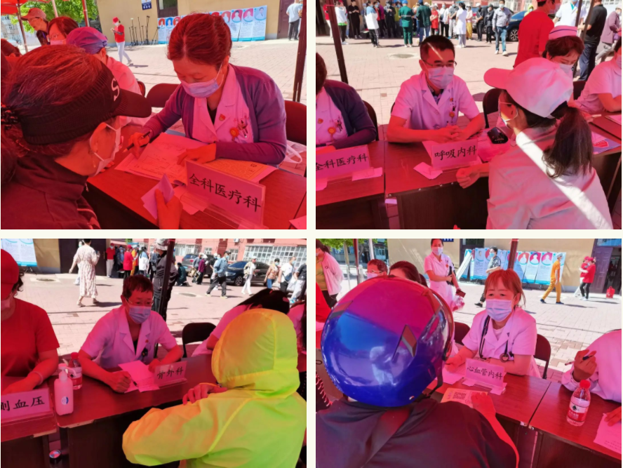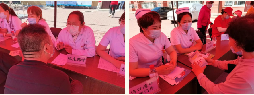 门诊部联合心血管内科、神经内科、全科医疗科、呼吸内科、中医科、骨外科、急诊医学科、PICC和伤口造口护理门诊及2名临床药师共12名专家,现场摆放各种宣传展板,居民根据需求选择就诊专家。
