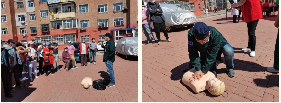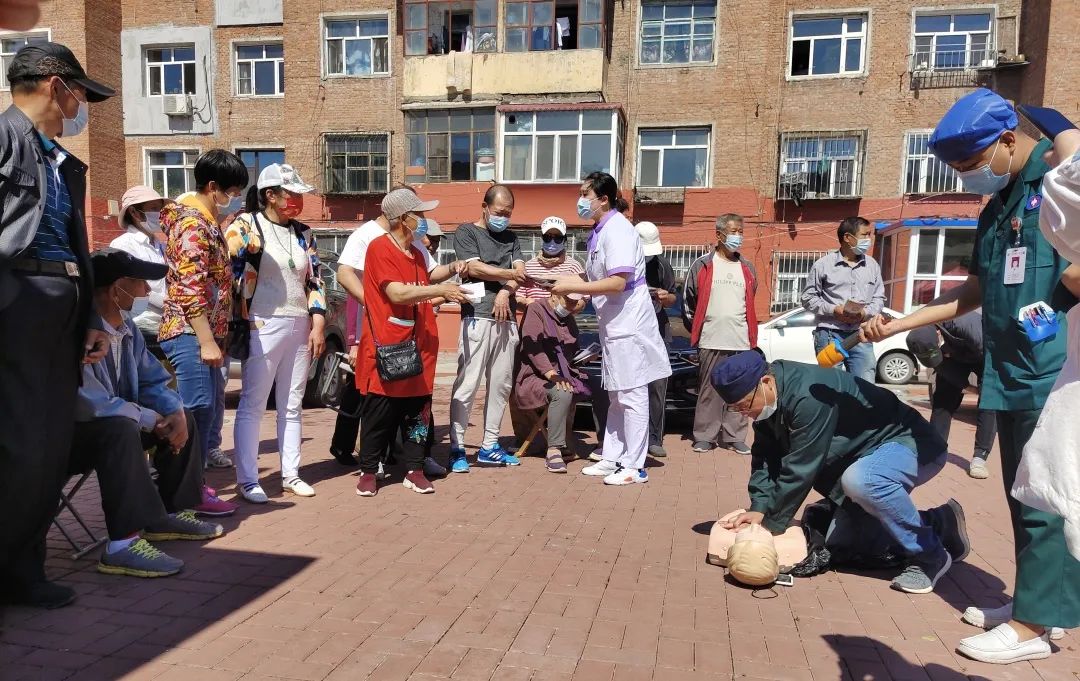 义诊现场,免费为患者提供测量血压、测量血氧饱和度、心电图和各部位超声检查。急诊医学科范医生现场教授大家心肺复苏操作,提高居民的自救能力,此次义诊受到了社区居民的欢迎。