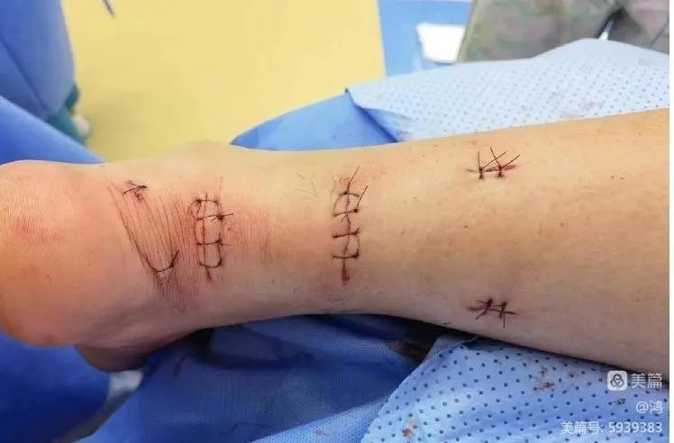 当日急诊手术时,曹立新主任和任广宇主治医生便为他进行了微创跟腱断裂吻合手术,利用自制跟腱微创导线器成功实现了跟腱断裂手术的微创化处理。