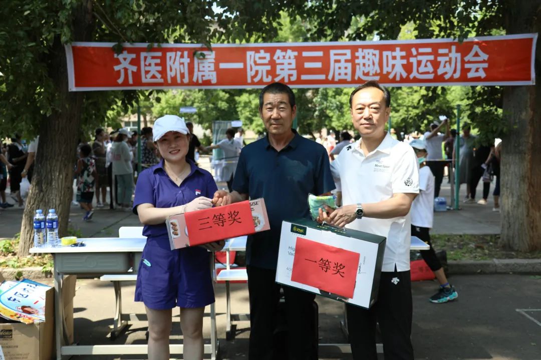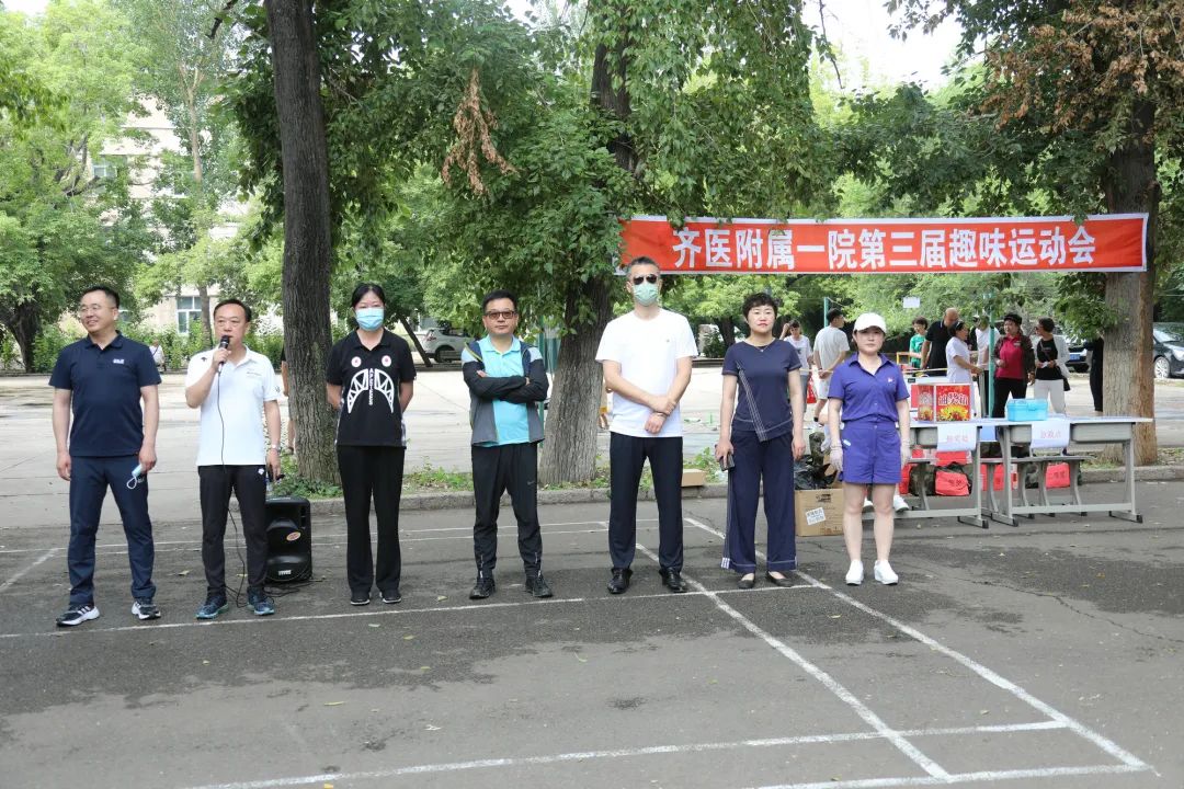 为丰富医院职工业余文化生活,建设“幸福医院”,7月2日上午,齐医附属一院第三届趣味运动会在南院区操场成功举办。副院长艾立辉主持开幕式。院领导和职工及家属积极参与,其乐融融,南院区操场变成欢乐的海洋。