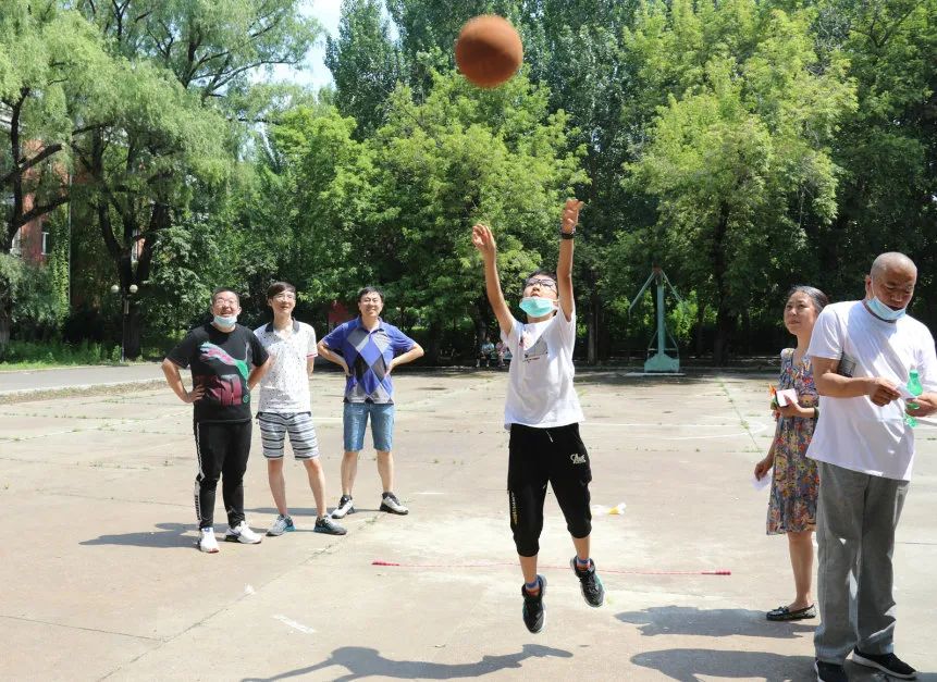 定点投篮场地,欢笑声、喝彩声、助威声不绝于耳,气氛紧张而有序,比赛场地成为欢乐沸腾的海洋。