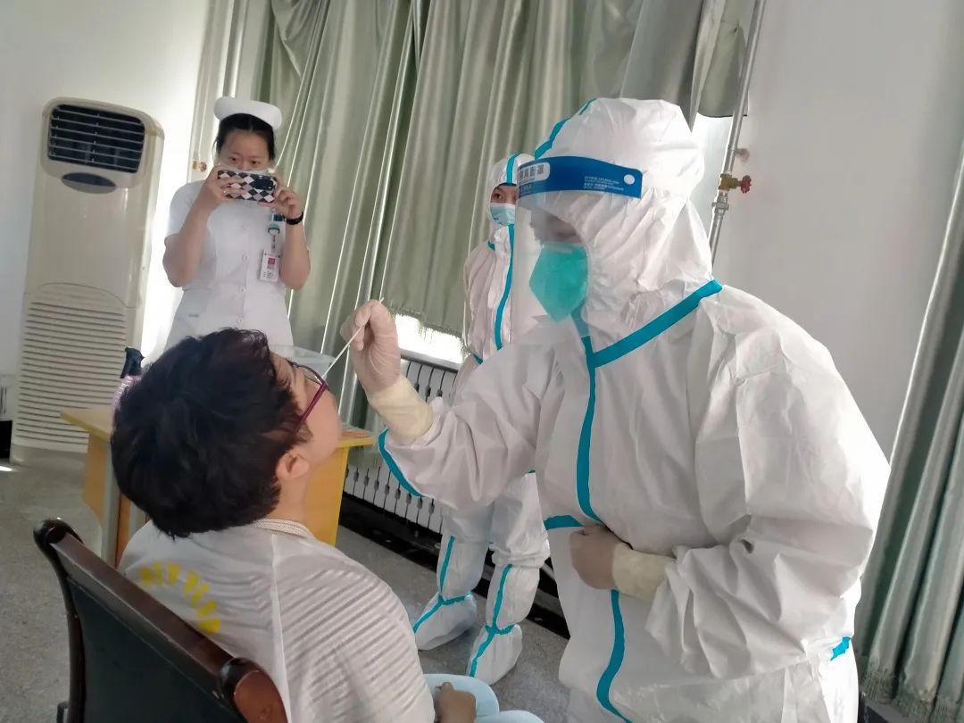 现在,疫情防控常态化,全民参与战疫。但在当年,家人还是有诸多的担心和顾虑,吕淑坤用科学防疫和战时有我的理论说服了他们。不仅如此,她还培训自己的先生,教会他六步洗手法、穿脱防护服以及基本的消杀流程和知识,现在的范先生完全可以做吕淑坤的助手。7月1日,医院开始三天一次的全院核酸检测,很多职工都说坤姐带了外援,当笔者赶到现场看到的就是这样感人的一幕:吕淑坤熟练地为员工和学生采集核酸样本,而范先生则穿着防护服为大家扫描二维码。三十度的天气,夫妻二人身着防护服,内里的头发打湿了,衣服能拧出水来……。当大家问及于此时,坤姐不好意思地说:“发热门诊人员本就紧张,他正好下班来陪我,闲着也是闲着……”。