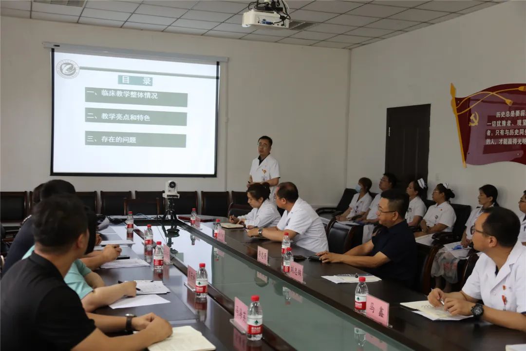 刘忠锦副院长从医院教学历史、教学运行、考试工作、临床师资、教学督导五个方面介绍了医院临床医学专业建设情况,并对医院教学亮点和特色及存在的问题进行了汇报。