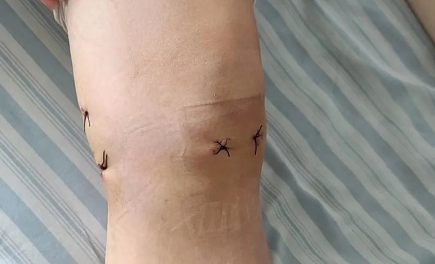 住院后,经过骨外科三病区王琳主任及其团队的详细查体,结合相应检查,制定具体手术方案,6月28日上午,在麻醉科手术室的配合下,由王琳主任、金浩医生为孙阿姨实施了右膝关节镜检查、内侧半月板后角撕裂修整成型、骨性关节炎清理、关节镜下腘窝囊肿切除术,只在膝关节周围切了4个5mm大小的切口就顺利完成了手术,术后第二天孙阿姨就感到右膝关节镜疼痛较术前明显减轻,腘窝囊肿消失了,而且可以下地行走了。
