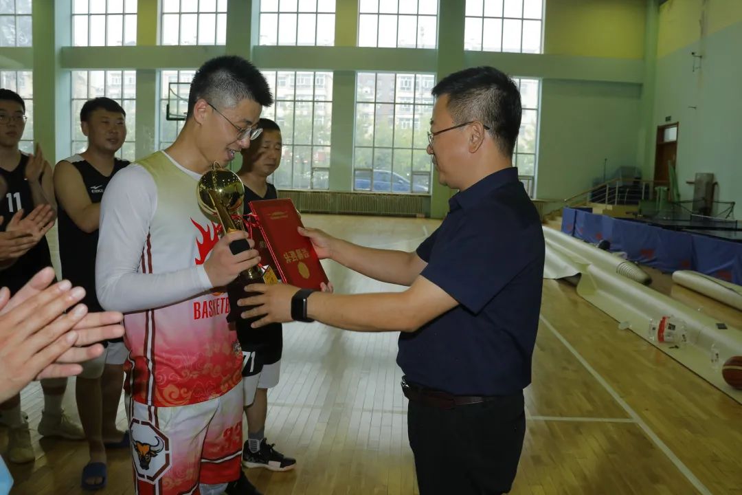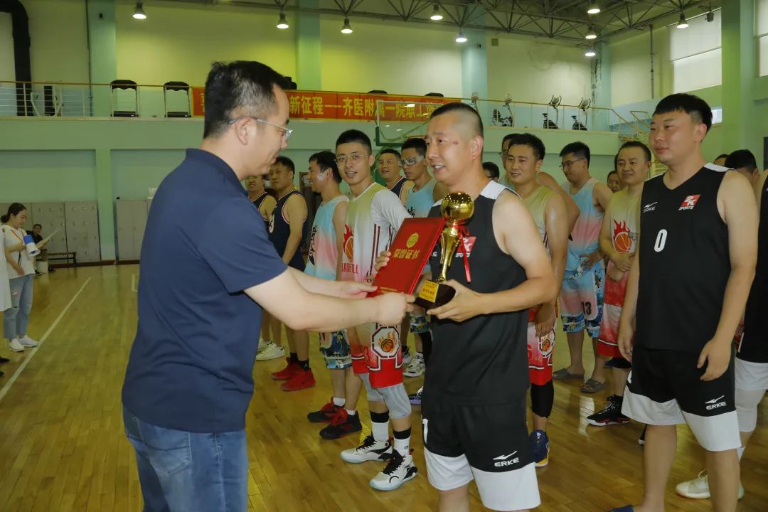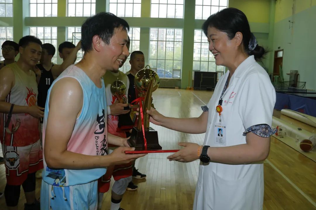 闭幕式上,院领导为获奖队伍颁发证书和奖杯。院长、党委副书记李忠原发表讲话。李院长对所有运动员的精彩表现和裁判员、工作人员的辛苦付出表示感谢,对大赛工作人员的后勤保障工作表示肯定。他强调今年是“幸福医院”建设年,职工文化生活精彩纷呈,各协会活动丰富。看到篮球场上的选手有52岁的老将,有20出头刚毕业工作的新兵,老将、新兵齐上阵,比赛精彩激烈扣人心弦,充分发扬了顽强拼搏、奋力争先的体育精神,彰显出附一人团结互助、拼搏进取、迎难而上的高贵品质,提升了医院的凝聚力。希望大家将这种精神内化于心,外化于行,在工作中闯出新路径,引进新思路,打出新天地!