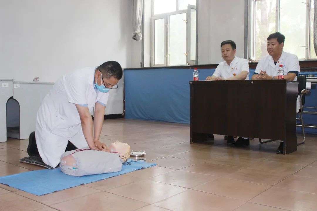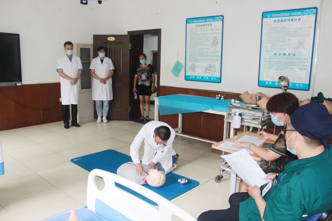 7月6、7日下午,全院医师技能操作考核在实践技能中心进行,要求每一位医师在规定时间内成功完成单人心肺复苏术。考核内容除了进行心肺复苏技能操作外,还考核了医务人员的心肺复苏知识、动作娴熟、临场应变等多方面的能力。7月13、14日下午,医务部组织全院医师在学术报告厅举办理论考核,大家在线上完成答题,95%以上的医生获得了优秀的好成绩。