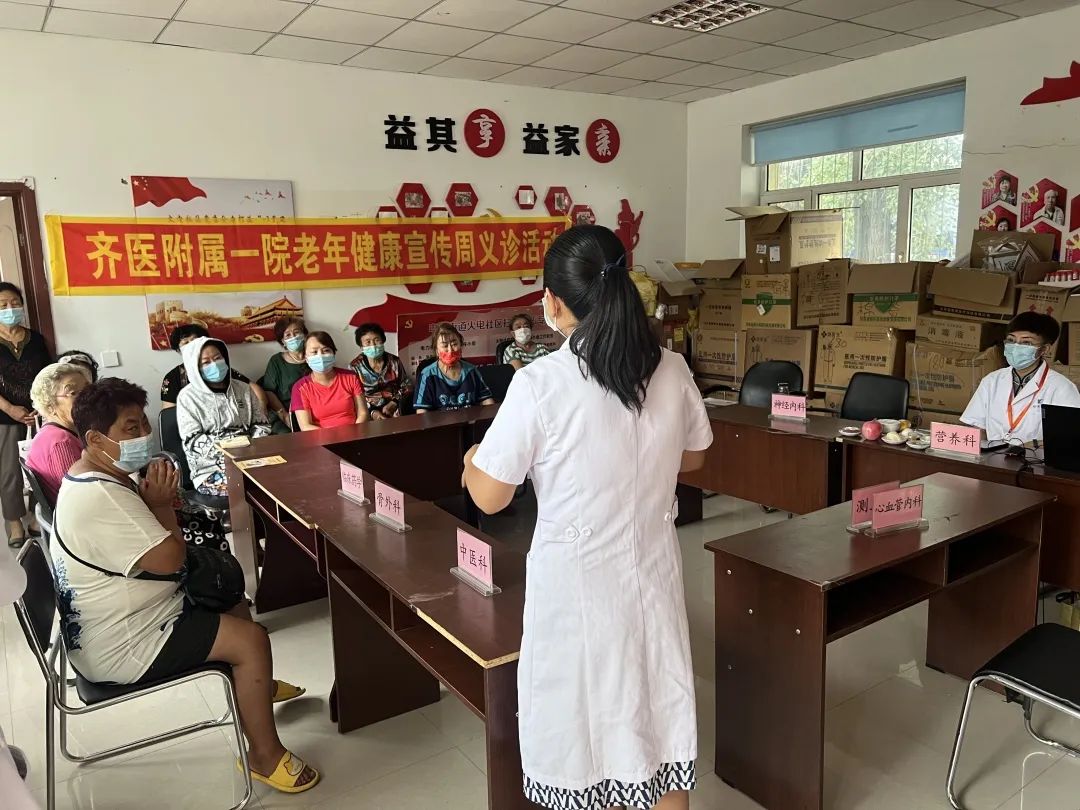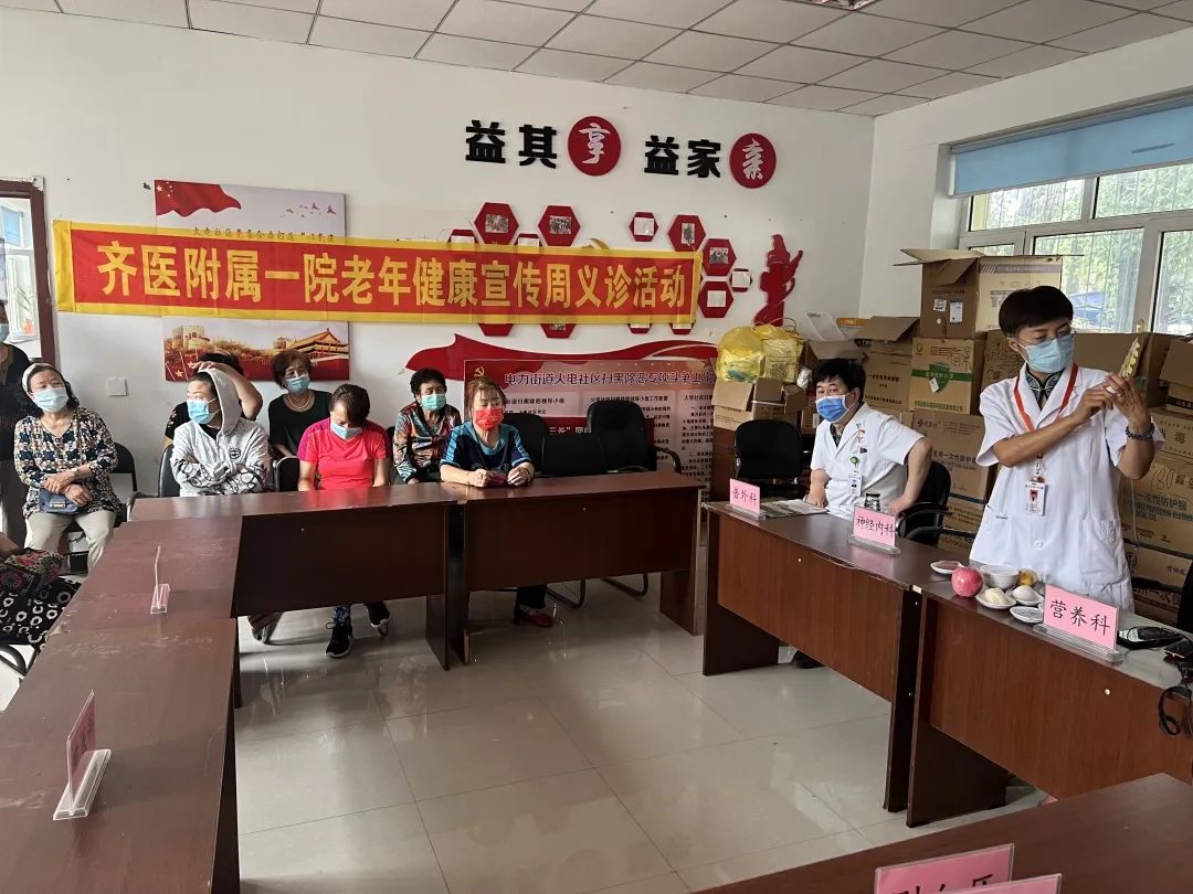 7月29日,齐医附属第一医院与富拉尔基区妇联联合开展“老年健康宣传周”活动。我院门诊部与医疗合作办组织骨外科、普外科、神经内科、心血管内科、营养科、中医科、临床药学等10余名专家走进电力社区,为居民朋友们义诊、健康宣教。