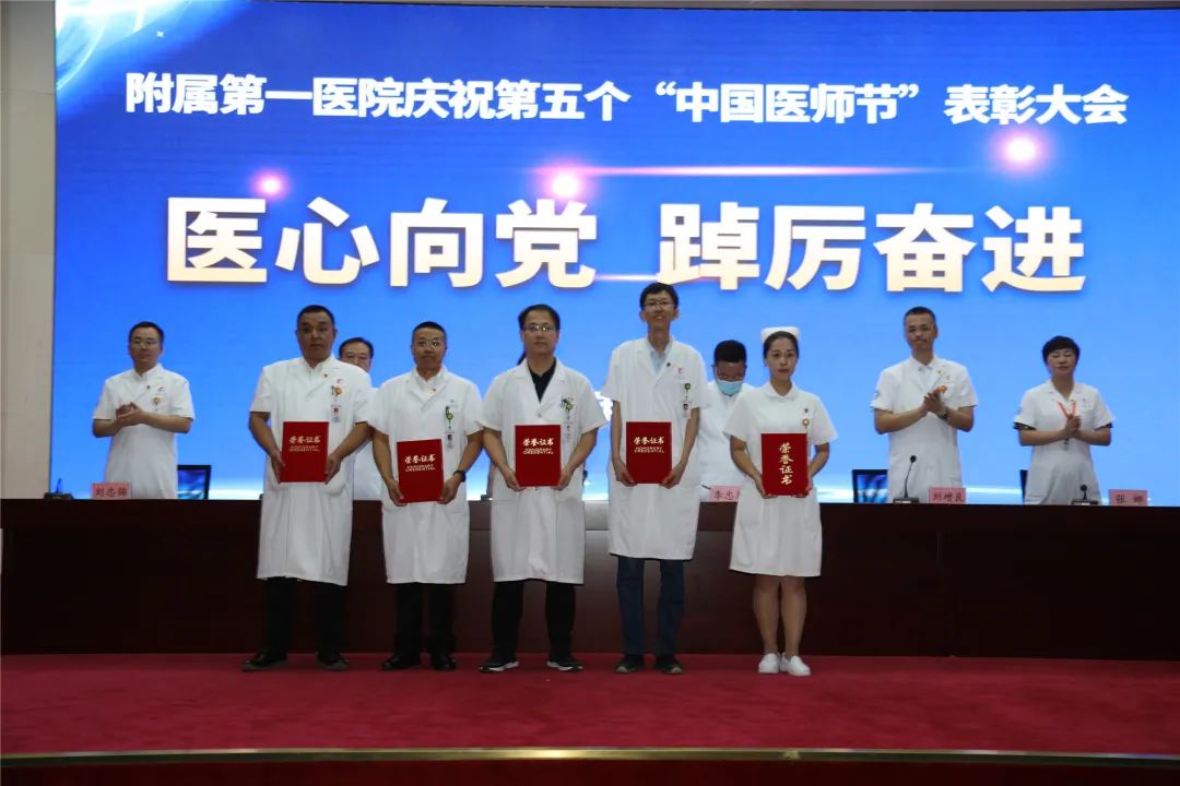 8月18日下午15:30,齐医附属一院召开了以“医心向党 踔厉奋进”为主题召开了第五个“中国医师节”庆祝表彰大会。医院领导班子、科主任、护士长、职能科室科长、各党支部书记及受表彰人员参加表彰大会,会议由副院长刘增良主持。