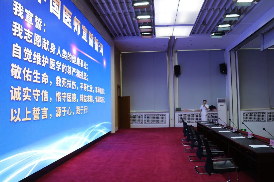 表彰大会在雄壮的国歌中拉开帷幕,全体医师起立,在医务部主任张羽镝的带领下,重温《医学誓言》,铿锵有力的誓言是我们对医学职业的承诺!更是对广大人民群众健康不忘初心的承诺!