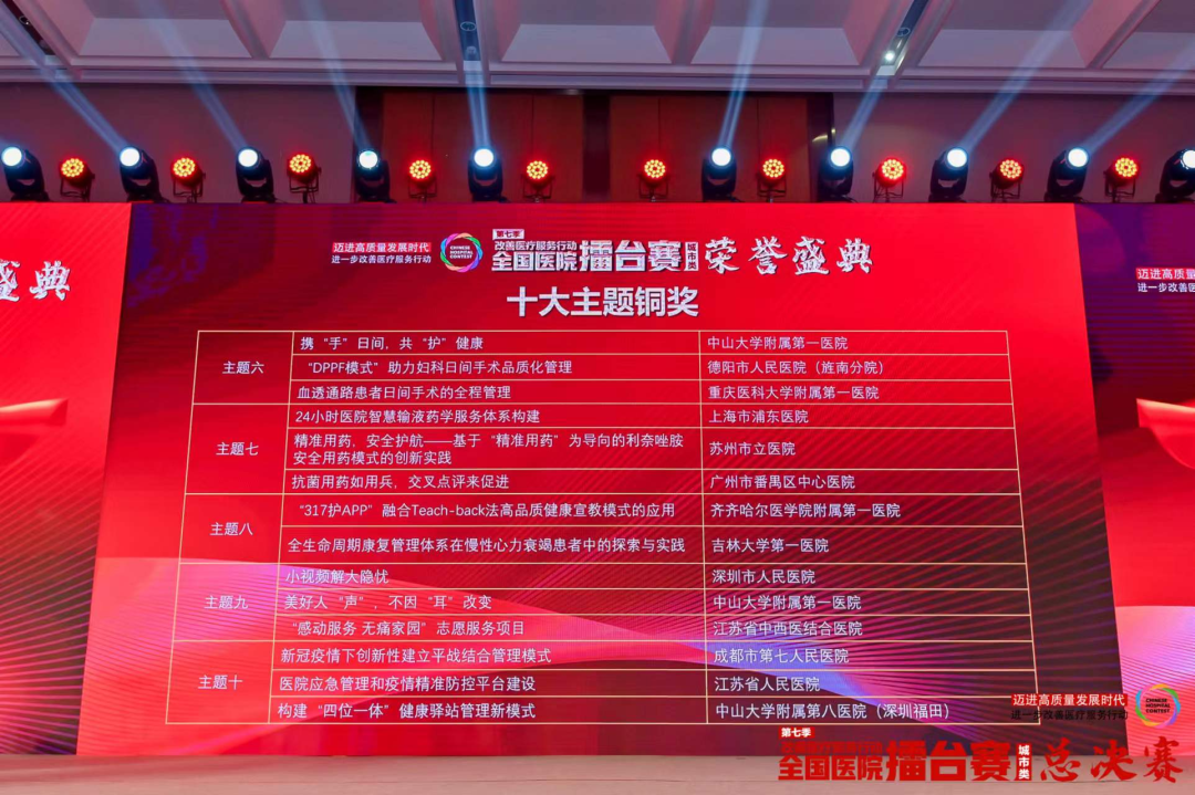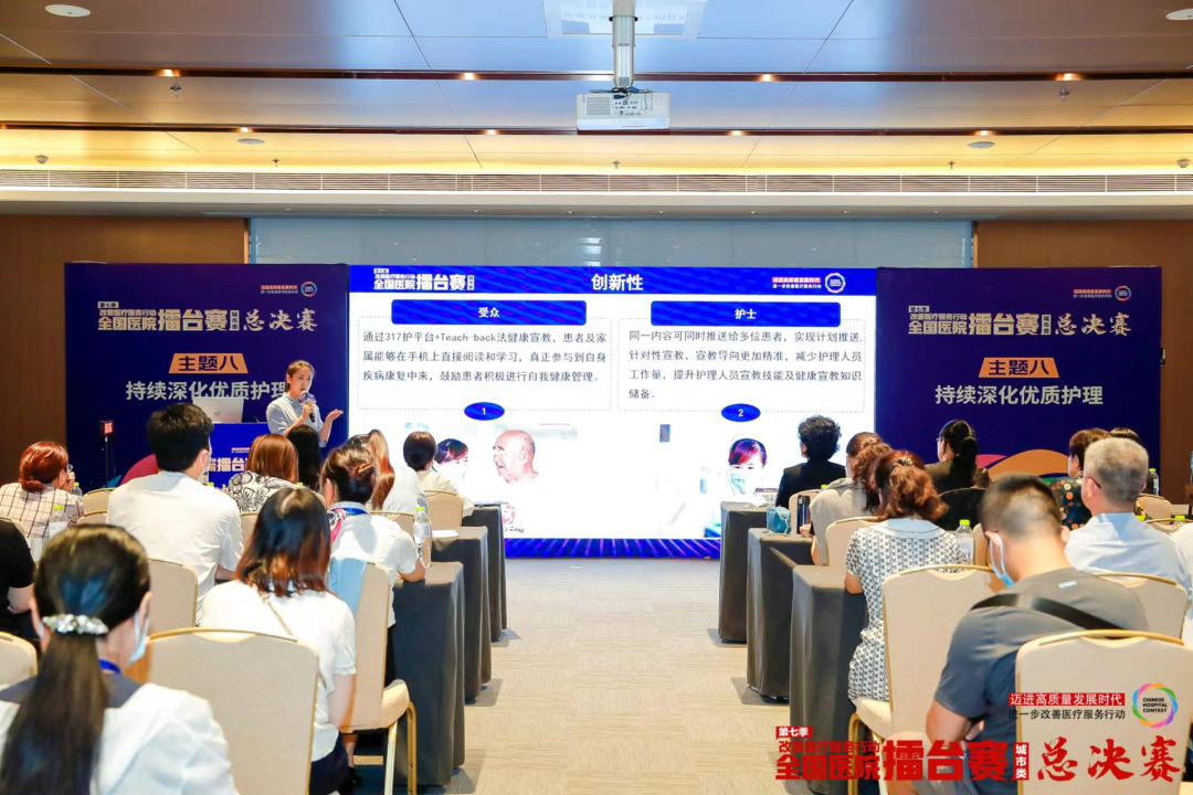8月12日,第七季改善医疗服务行动全国医院擂台赛总决赛暨荣誉盛典在青岛举行。齐医附属一院选送的持续深化优质护理案例《“317护APP”融合Teach-back法高品质健康宣教模式的应用》经过重重过关,最终从全国2058个案例中脱颖而出,成功晋级百强案例榜和决赛环节,与众多国家级、省部级医学中心同台角逐,并最后斩获主题八“持续深化优质护理”案例全国医院擂台赛总决赛铜奖(全国第五名)。