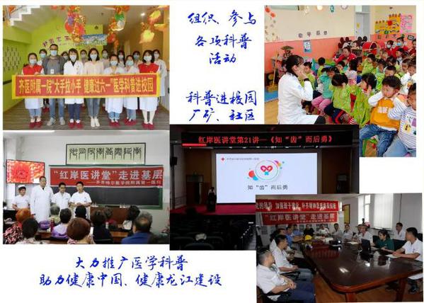 齐齐哈尔医学院附属第一医院院史馆是齐齐哈尔市科普教育基地。自2019年12月20日开馆以来,现累计接待中国工程院院士陈志南、田伟、张学以及上级领导、老校友、本院职工、工矿企业、学生、社区群众等参观人员5000余人次。2021年,院史馆科普教育基地开展的“传承红色基因 坚守医者初心”全国科普日活动在全国科普日平台展播,吸引线上5000余人参观。2022年基地申报并成功立项黑龙江省科协“2022年全民科学素养第一批项目”“科技资源科普化联合行动项目”——齐医附属一院院史馆科普教育基地“红岸医讲堂”“专家巡回义诊”系列科普活动;黑龙江省科协“2022年全民科学素养第二批项目”活动中,医院以提升“老工业基地健康素养”为题再次申报全国科普日分会场活动。医院整合医疗资源,培育科普人才,充分发挥自身优势,传播科学知识,弘扬科学精神,拓展科普教育功能,发挥科普教育基地红色阵地作用,使参观者了解红岸近代医学发展历史,了解齐齐哈尔医学院和富拉尔基这座红色工业重地的同时,学习科普宣传材料,掌握健康生活理念,提升全民科学素养,促进健康中国战略的实施。在做好实际工作的同时,以科研立项的形式将科普成果固定下来,为科普普及和全民科学素养提升做出附属一院贡献。