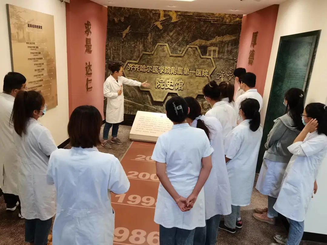 宣传科副科长孙双滨声情并茂地为学员们讲述了医院的发展历史,大家仿佛置身于时光隧道中。当学员们了解到齐医附属一院是伴随着新中国第一个“五年计划”的落成而建立,又助推学院创建了中国第一个妇产本科专业时,无不为医院而自豪。黑龙江省第一例膝关节置换术的成功、齐齐哈尔市第一个痔科的创建、承担的六五、七五攻关课题……通过一张张珍贵的老照片、一件件带有历史厚重感的实物、一个个记录着医院辉煌与荣誉的奖牌,每一位住培学员都切身感受医院的沧桑巨变,了解了附属一院人为医疗事业奋斗终身的不懈追求和情感寄托,知晓了医院近年来的发展成果及未来的发展规划,感叹医院的绵延传承和沧桑蝶变。