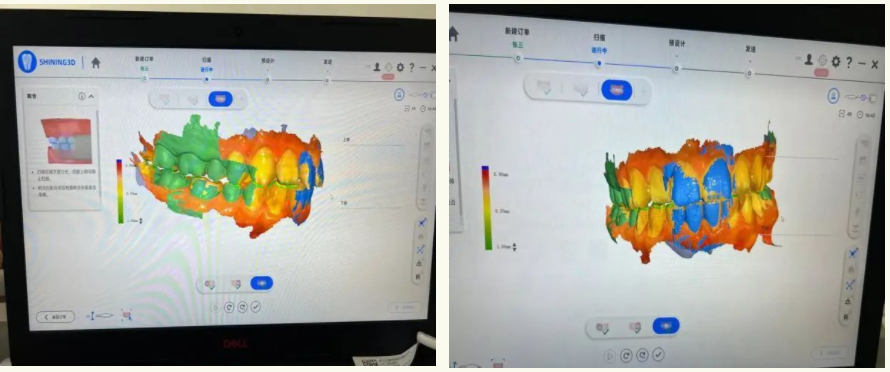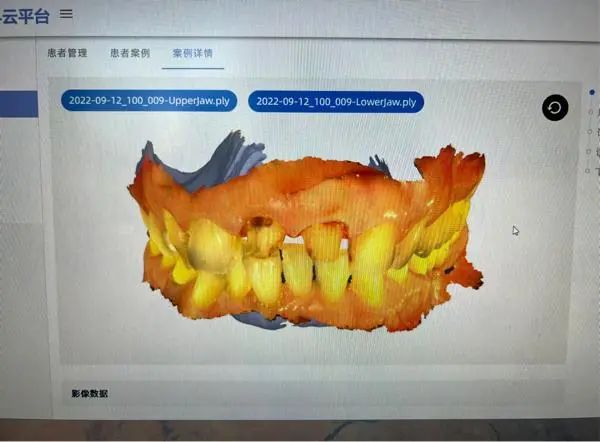 口扫是通过高频拍照模式获取口内模型的,一个模型由上千张照片集合而成。区别于传统取模,口扫一般3到5分钟就能得到影像报告,然后模拟出完整的虚拟口内影像,从拍完CBCT再把口扫数据调过来,直接电脑匹配上只需要10分钟。这样一来,医生可以直接看到患者的具体数据,最大程度节约时间。
