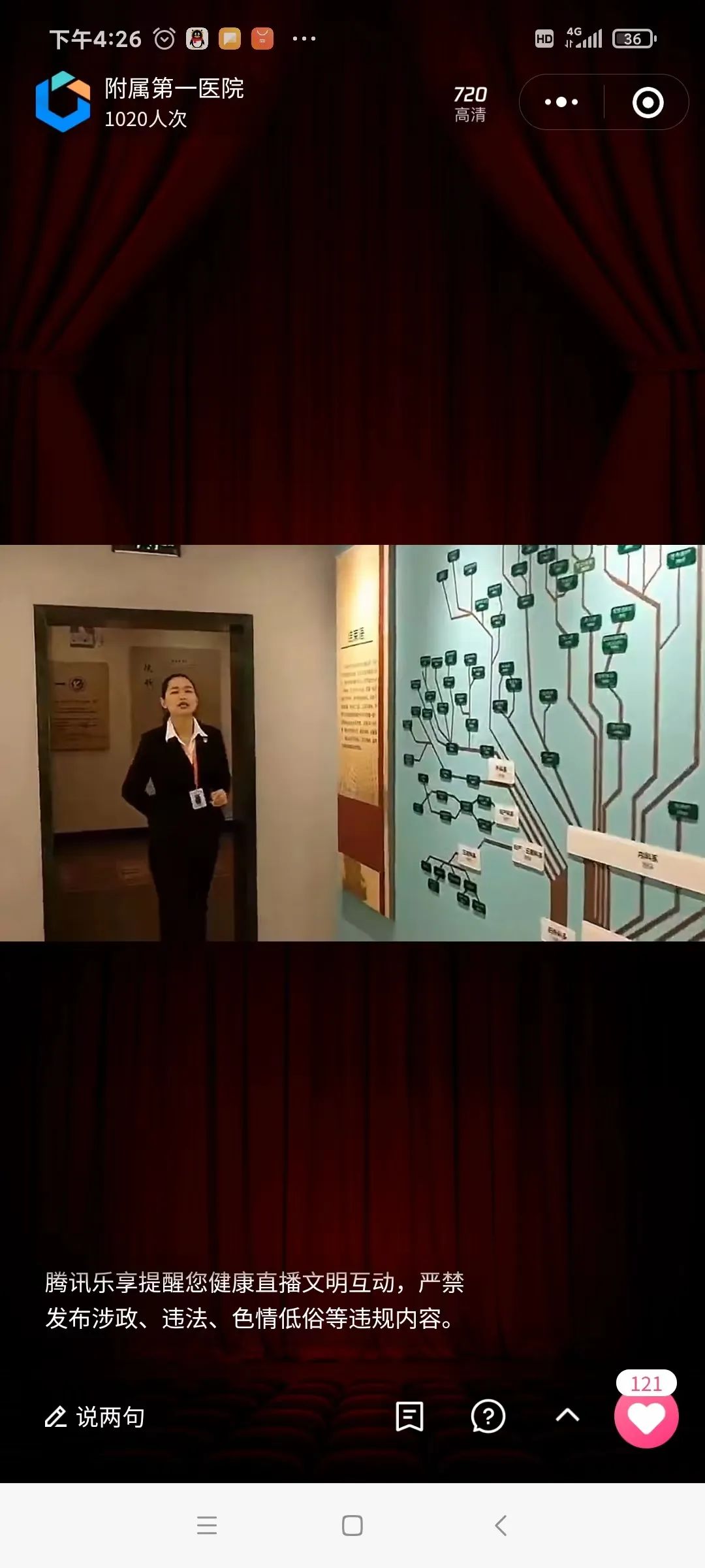 9月13日16:00,喜迎二十大 科普向未来——齐医附属一院院史馆“开学科普季”宣讲活动。宣传科副科长孙双滨在院史馆为齐齐哈尔医学院19级临床医学班、19级全科医学班、19级精神本科班300名即将进入临床学习的1000余名医学生进行现场直播,大家纷纷表示云参观和现场参观一样震撼。