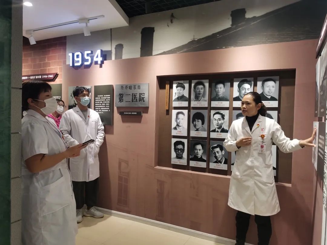 9月29日14:00,喜迎二十大 科普向未来——齐医附属一院院史馆“开学科普季”宣讲活动之党员、研究生专场继续进行。宣传科副科长孙双滨在院史馆为医院20名正式入党的党员和2020、2021级5名硕士研究生进行讲解。