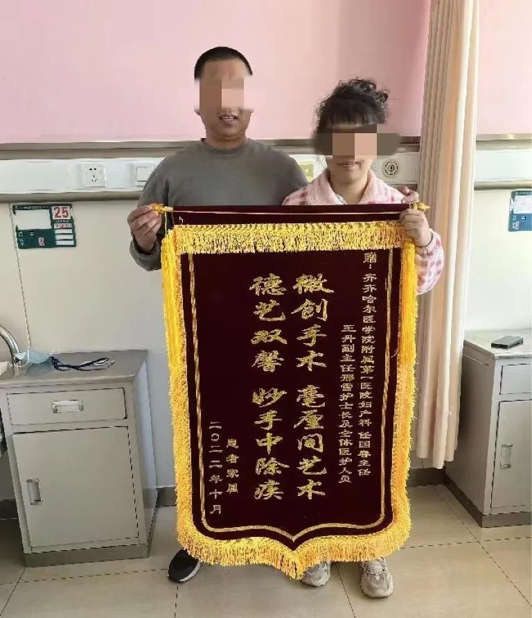 10月22日,齐医附属一院妇产科收到患者及家属送来的一面锦旗,上面写道:微创手术,毫厘间艺术,德艺双馨,妙手中除疾。这是患者及家属对我院妇产科团队的认可与赞誉!