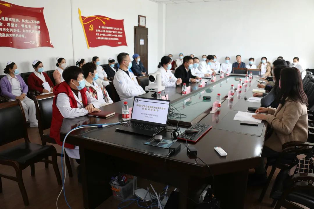 调研会上,院长、党委副书记李忠原首先就医院发展历程、护理师资队伍建设、学科发展、人才培养、专业建设、社会服务以及发展需求等方面进行介绍。李院长表示我院作为学院的第一个附属医院,教学内涵丰富、师资力量雄厚、教学质量过硬,在师资培训、课程建设、教学竞赛及科学研究、研究生培养等方面给予护理学科大力支持,尤其是介绍了近几年来涌现出两位黑龙江省最美护士(满春喜、于洋)和一位最美护士提名奖(刘秀英),并在我省卫生新技术获得五个奖项等突出成绩。针对学生关心的问题,我院将一如既往的支持关心护理学科的发展,协商探讨解决办法。今后,医院将按照学院“十四五”建设规划,深化落实“质量立院、科技兴院、人才强院、特色发展”的发展战略,整合力量助推学院硕士点申报,为我院护理教育教学发展奠定坚实的基础,积极推动未来护理学院学科建设高质量发展。