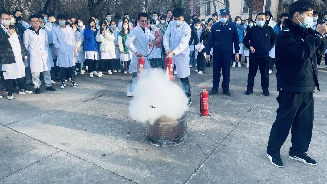 演习的最后一个环节是学生灭火演练,在学校的空地上,工作人员模拟火灾现场,消防官兵在演习开始前针对参演师生群体,现场简要讲授了干粉灭火器结构、工作原理和功能、使用要领及注意事项。同学们随后进行了实地灭火演练。