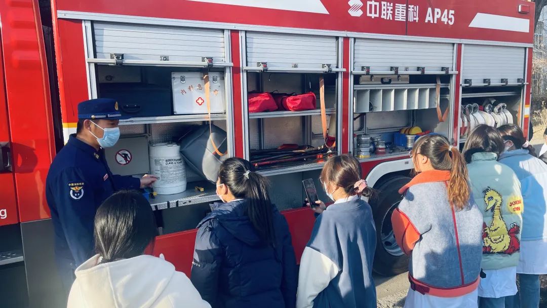 随后,消防战士们带领学生们近距离观察消防车,详细向大家介绍了消防车的型号、功能、操作事项及车内各类救援器材以及在灭火救援任务中的用途。