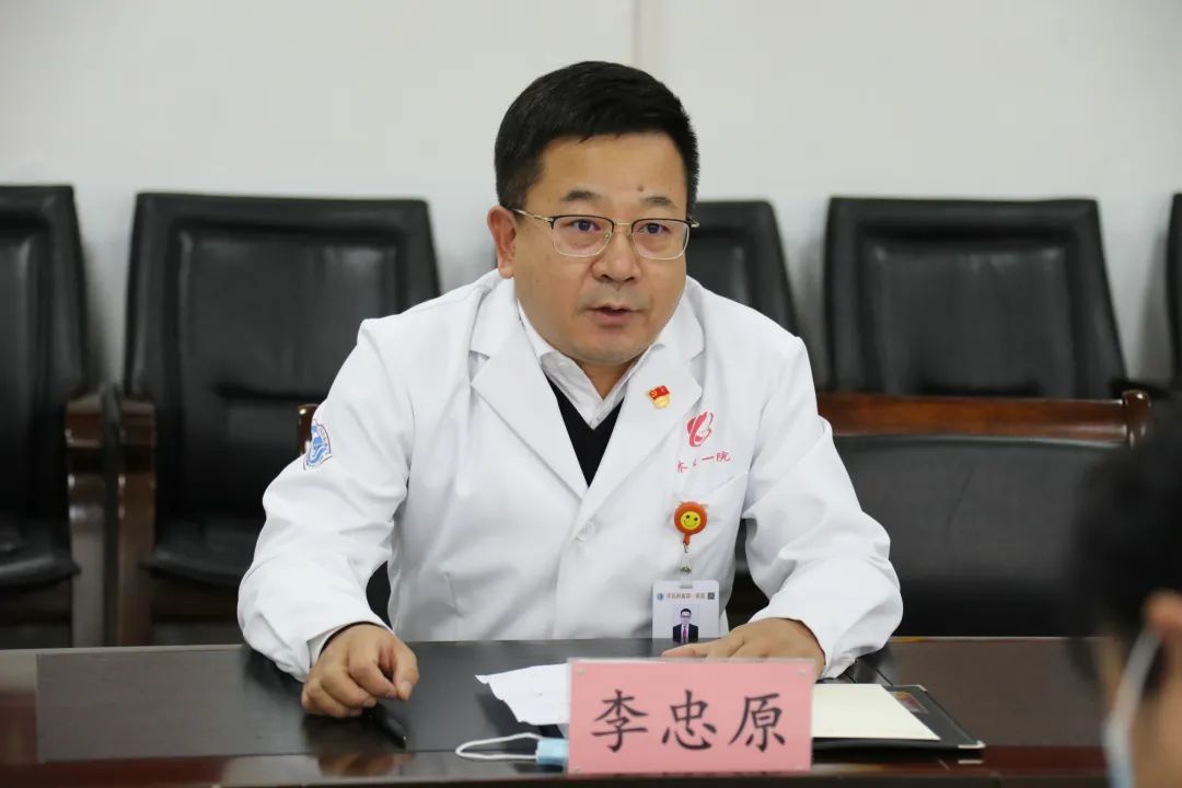 最后,我院院长、党委副书记李忠原代表医院感谢学院党委对附属一院发展的关心和帮助。李院长表示医院党政领导将同心戮力,不负学院党委期望,团结奋斗、攻坚克难,提高医疗管理质量,提升医疗服务能力和水平,努力开创附属一院各项事业发展新局面。