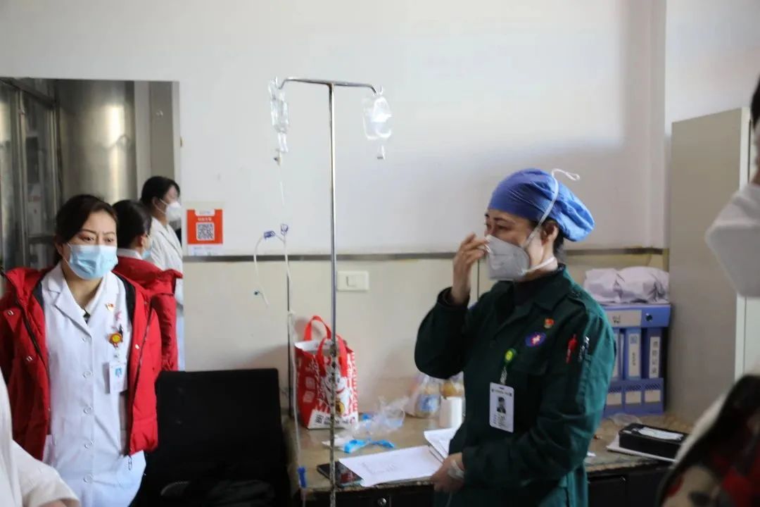 自“新十条”实施以来,大量呼吸系统疾病患者及重症患者涌入急诊,导致急诊科工作超负荷运转,医务人员都是带病上岗,随叫随到,毫无怨言,即便他们发着高烧、浑身酸痛、面色苍白、声音沙哑、呼吸沉重,但依然坚守岗位,没有退缩。医生张强烧到38.3°C,一天都没有休息;范希超烧到38.5°C,还坚持值班;马贺晕倒在诊室,醒来继续战斗;唐晶一夜看了50多患者,兼顾急诊、发热门诊和120出诊;护士长张艳高烧不退,坚持上岗,在办公室边点滴边工作……还有担架员,他们也是急诊急救团队中不可缺少的一员,用自己的身躯和“阳康”后仅有的力气背着年迈的患者下楼就诊。医生、护士、担架员,每一个附属一院急诊人都是一名战士,敢打硬仗、敢于冲锋、勇于奉献,在这个寒冷而多舛的冬天为百姓构筑防疫之堤,用凡人微光驱赶百姓迷惘不安的心绪,他们当真当得起我们的称赞!