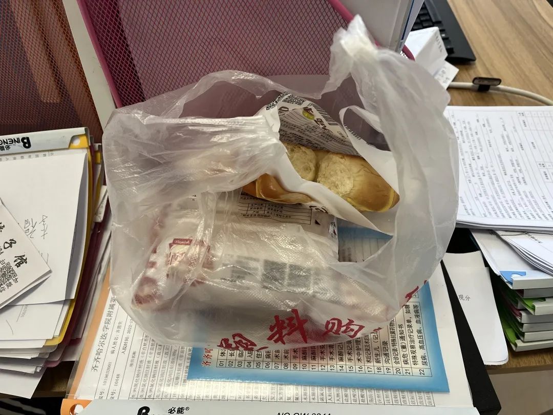 在医生办公桌上,一袋面包已经被打开,吃了一半,据屋里的医生说,他们已经不奢望能够按时按点吃饭了,谁饿了就吃点面包“垫吧垫吧”,然后继续投入战斗。