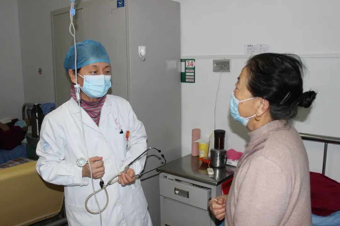 “患者年龄大,紧急拍个CT,再做个血常规……”“8床患者急测血氧,快……”,未见其人,先闻其声,一个小小瘦瘦的身影忙的像一个陀螺。面对潮水般的肺炎患者,尤其是老年危重患者,争取抢救时间,维持血氧饱和度十分重要,所以医院统筹调配,外科系统也全面接受肺炎患者,但是对于治疗而言,有着三年抗疫经验,站在新冠患者救治一线的丛丽萍更为专业,每日会诊无数,要么是电话指导,要么是奔波在各个病区之间,这就是丛丽萍的日常。笔者说明采访来意,丛主任急忙挥手:“采访啥,医生不就是救死扶伤,这是本职工作啊。”