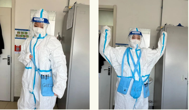 可爱的护士们在每天忙碌中忘记自己咳嗽、声音嘶哑、心慌、虚弱的症状,一个个走路带风,手脚麻利,她们经常忙的没有时间喝口水,忘记给自己定午饭,不过这群乐观的90后、00后从来没有人叫过苦和累,还在繁忙的工作中自娱自乐,由于穿着防护服不方便携带笔和其他工作必须品,下班后她们自己制作小背包,还给背包设计Logo,有LV、GUCCI等等,多么可爱的一群人啊!此刻她们化身美少女战士,与病毒进行着近距离的“搏斗”!