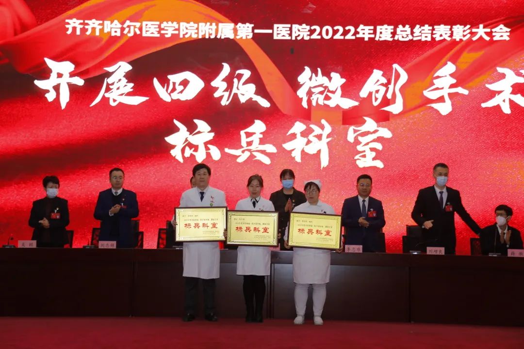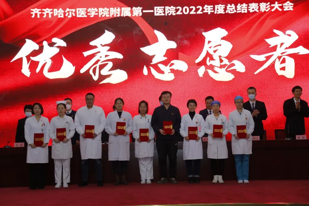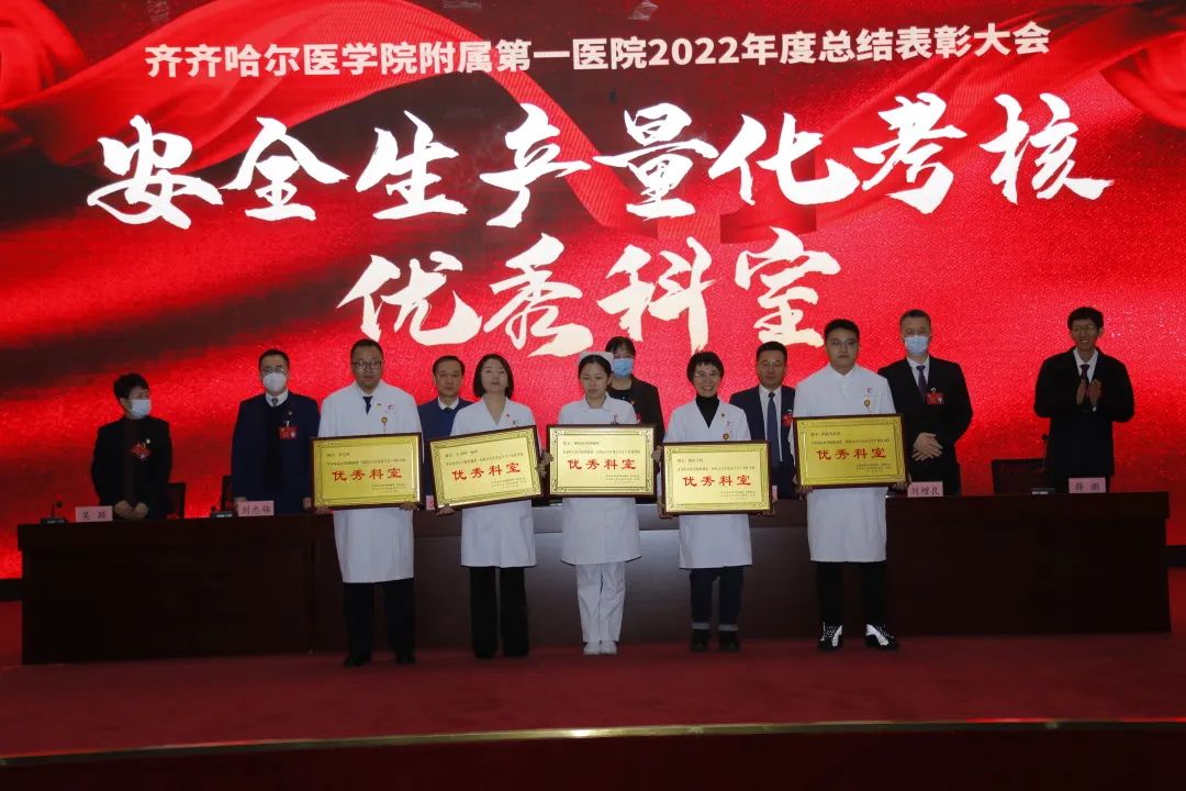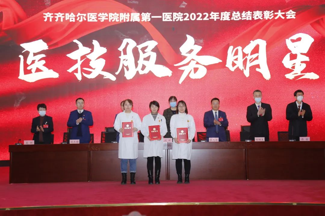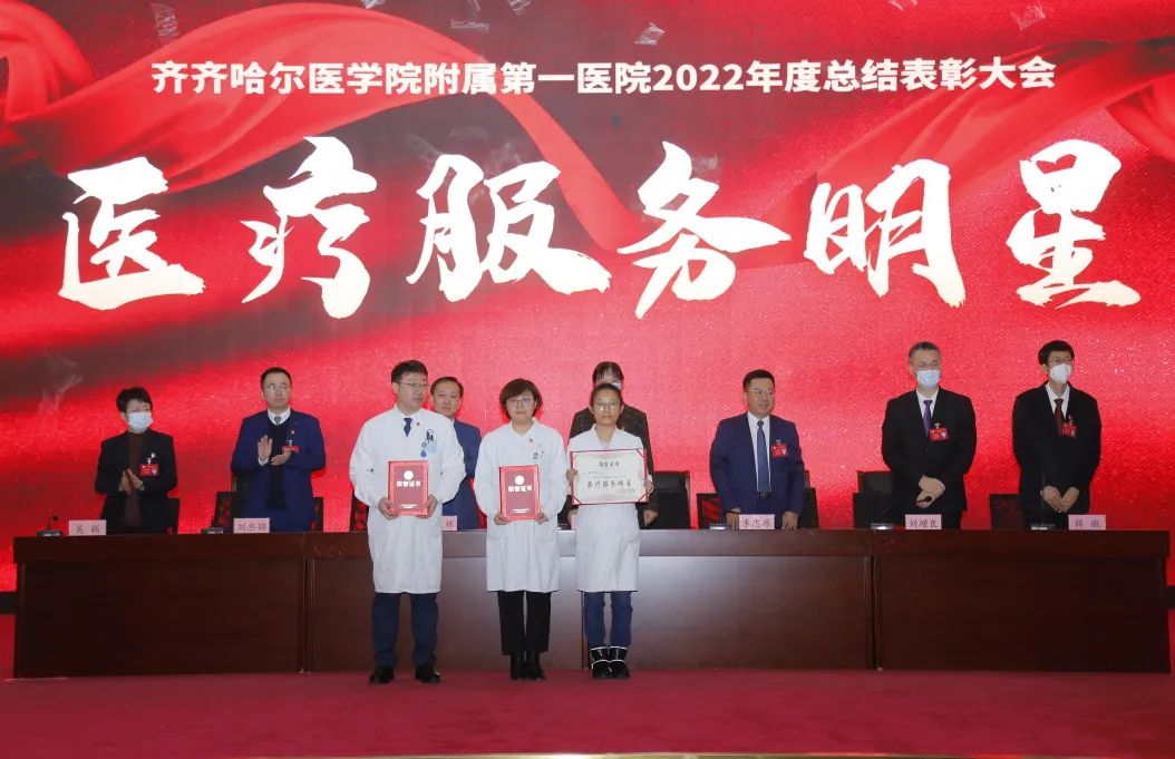会上,副院长刘增良同志宣读《关于命名表彰2022年度先进集体和先进工作者的决定》及《2022年度获得国家、省、市(学院)、区集体及个人荣誉名录》;副院长刘忠锦同志宣读《关于命名表彰2022年度医疗工作先进科室及个人的决定》《关于命名表彰2022年度四级、微创手术标兵科室及运营发展突出贡献奖的决定》及《关于命名表彰“第三季”优质服务明星的决定》;副院长薛徽同志宣读《关于表彰信息化应用先进集体和先进个人的通知》《关于表彰2022年度安全生产量化考核标兵及优秀科室的通知》;党委委员、党办主任吴颖同志宣读《关于命名表彰2022年度优秀通讯员的决定》及《关于命名表彰优秀志愿者的决》,院领导为获奖先进集体和个人颁奖。