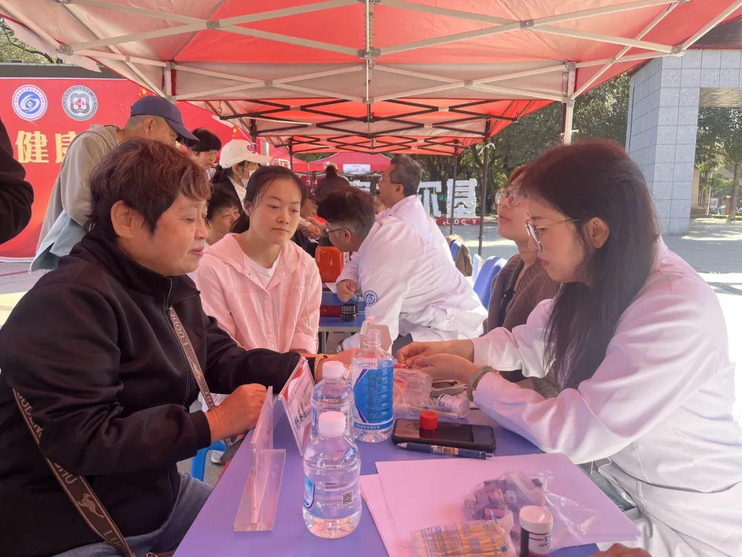 在诊疗区域,各学科专家面前早已排起了长队。来自附属一院内分泌二科杨英慧主任耐心地为每位患者听诊、询问病史、检测血糖,细致解读检查报告,并针对不同病情给出个性化的治疗建议和用药指导。“您平时血糖控制得怎么样?有没有按时吃药?”“饮食上要注意营养均衡,多吃新鲜蔬菜,定期监测血糖。”杨主任温和的话语让患者倍感亲切。
