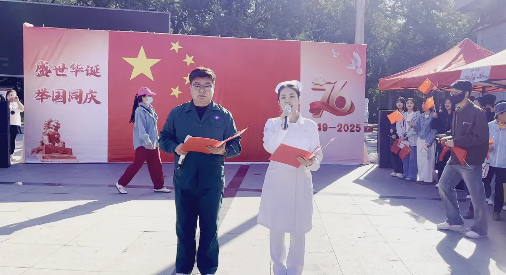 30日上午9点,一段悠扬的音乐在红岸公园上空响起,义诊人群中,我院医护人员暂时放下手中的工作,拿起麦克风,随着音乐唱起了《今天是你的生日中国》《我和我的祖国》《歌唱祖国》,歌声宛转悠扬,朗诵铿锵激昂,现场的医护人员和前来义诊的百姓受到现场热烈气氛的感染,都不约而同地跟着大声唱起来,歌声响彻云霄。不少市民一边跟着哼唱,一边拿出手机记录下这动人的瞬间,大家手中挥舞的五星红旗与脸上的笑容相映成辉,成为红岸公园当天最美丽的风景线。