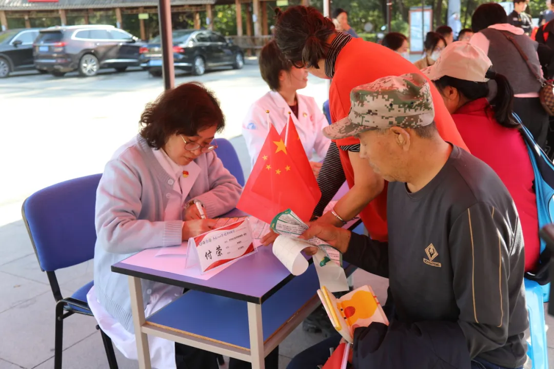 临床实践的启蒙,始于两场意义非凡的义诊,也让我们在躬身服务中体悟到“达仁”的真谛。初秋的红岸公园,晨露未晞,我们便紧随带教老师的脚步,支起义诊摊位为来往群众答疑解惑。用褪去书本晦涩的通俗语言普及肿瘤预防知识,轻轻拍着焦虑老人的手耐心安抚,拿着用药清单为慢病患者逐字讲解注意事项——当看到一张张紧锁的眉头渐渐舒展,一个个安心离去的背影消失在晨光里,我们深切懂得,“达仁”不是高悬的理念,而是以医者仁心为底色,用专业与真诚为群众健康筑起的温暖屏障。