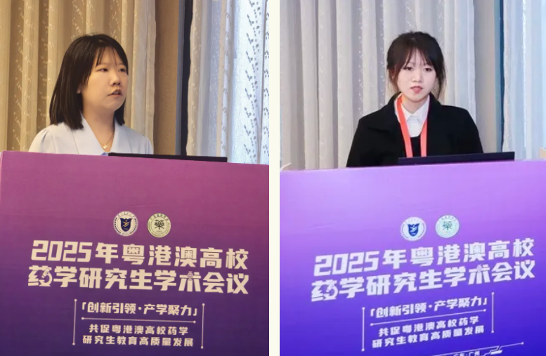 12月25-26日,由广东药科大学、广东省药学会联合主办,全国药学专业学位研究生教育指导委员会(以下简称教指委)、粤港澳高校研究生教育联盟、“一带一路”中医药发展联盟指导的“2025年粤港澳高校药学研究生学术会议”在广州成功举办。我院药学部崔立然主任指导的研究生黄欣菊、傅文瑜积极参与此次学术会议,凭借扎实的专业功底与出色的研究成果,在论文口头汇报环节中表现突出,最终双双斩获特等奖荣誉。