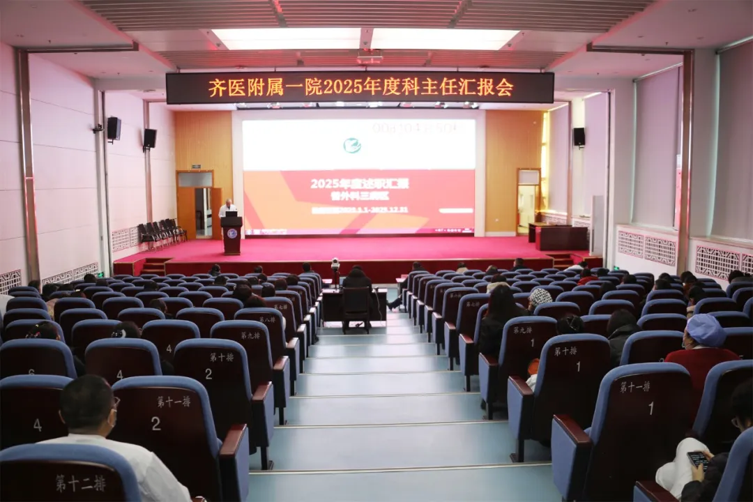 1月22日,齐医附属一院2025年度科主任总结汇报会在学术报告厅召开,医院领导班子成员、全院中层干部参加了会议。院长、党委副书记薛徽发表总结讲话,组织科副科长李锁利主持会议。
