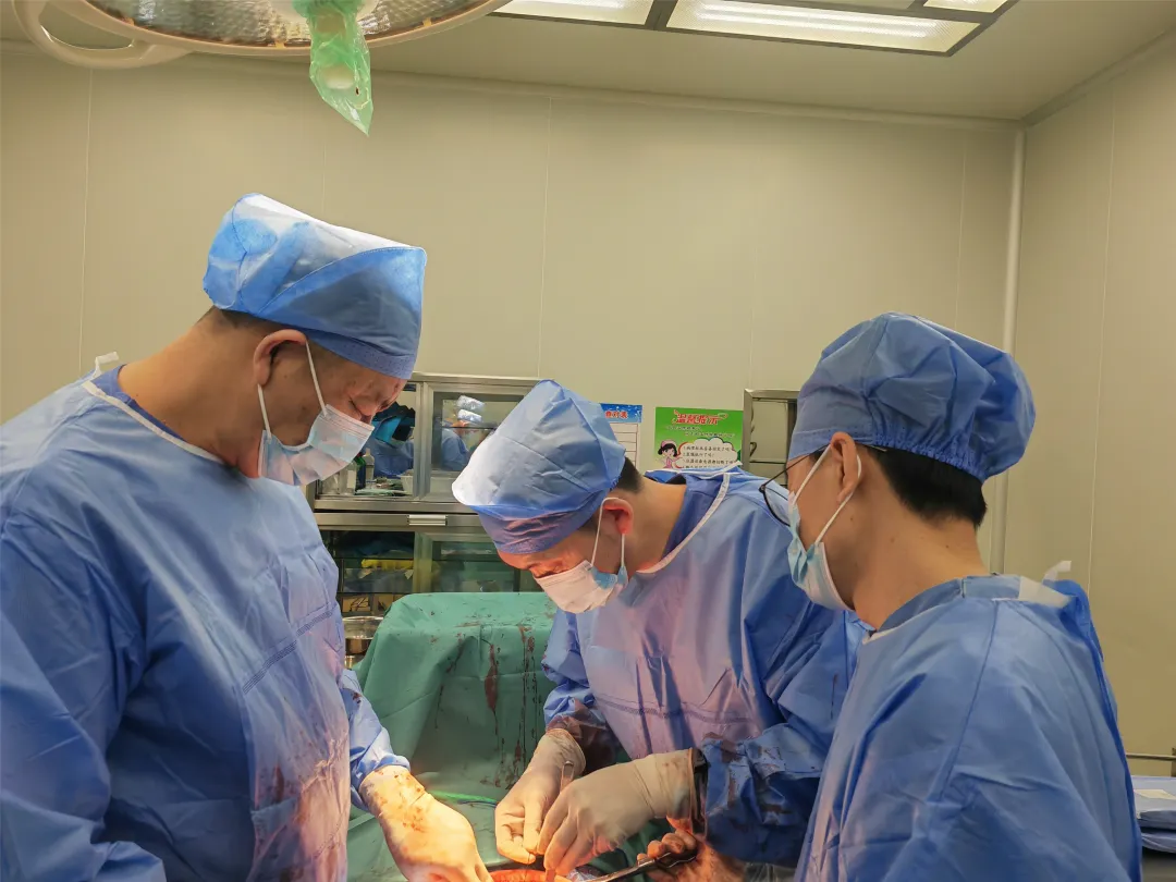 手术环节,麻醉科孙志勇副主任迅速到位,高效完成麻醉操作,开通深静脉通路,持续快速输血、输液,为手术顺利开展提供了坚实保障。术中探查发现,患者腹腔内血性积液及血凝块总量达4000~4500ml,手术过程中一度出现血压测不出的危急情况,救治难度极大。据医学常识,肠系膜破裂导致的失血性休克需紧急手术止血,否则将危及患者生命。医护团队临危不乱,快速探查腹腔明确出血原因,发现患者小肠系膜多发破裂、血肿,多处血管断端持续大量出血,随即果断采取结扎出血点止血、切除血运障碍小肠(约1.8m)等针对性处置。经过数小时的奋力抢救,患者出血得到有效控制,循环逐渐稳定,血压逐步回升,手术取得圆满成功。