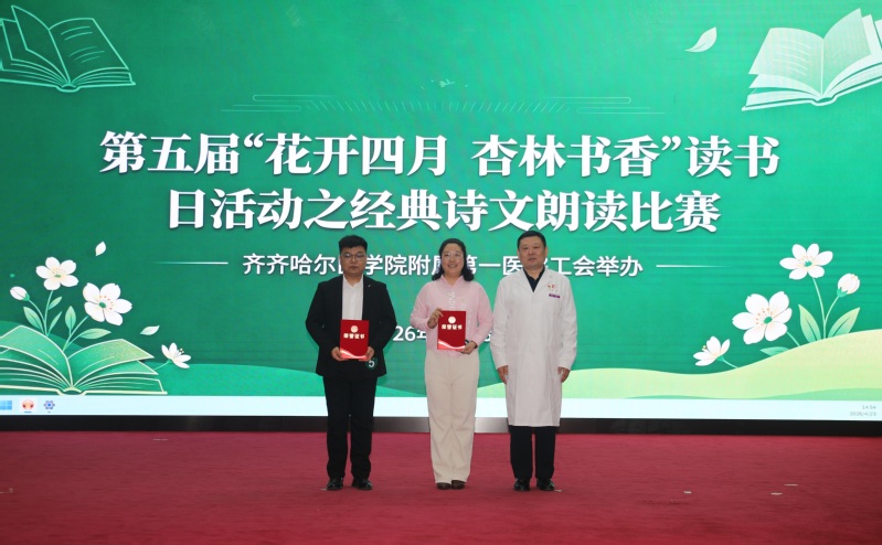 繁花似锦绘春意,书香袅袅润杏林。为传承弘扬中华优秀传统文化、丰富职工精神文化生活,齐医附属一院于4月23日举办第五届“花开四月·杏林书香”经典诗文诵读比赛。党委书记刘旭之、党委副书记吴颖、工会主席陈珊珊、党办主任李锁利、宣传科科长陈鹏、机关二分会主席(门诊部主任)谭丽娜担任大赛评委,全院百余名职工线上线下齐聚,共赴这场兼具文化底蕴与医者情怀的视听盛宴。