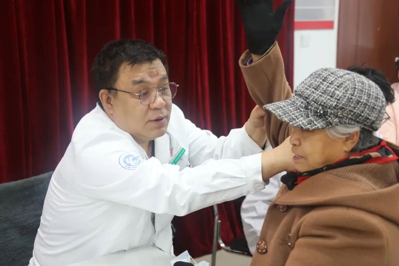 在诊疗服务区,专家团队各展所长,为居民提供 “一站式” 健康守护。骨外科诊区,龙江名医曹立新主任耐心接待每一位患者,重点排查骨质疏松、关节疼痛等病症,为腰腿痛患者提供康复训练指导和居家护理建议;心内科专家专注解答高血压、冠心病、心悸等常见问题,结合免费心电图检查结果,为患者调整用药方案并强调日常血压监测要点;内分泌科专家针对中老年人高发的糖尿病、血脂异常等问题,通过免费血糖检测筛查高危人群,细致讲解饮食调理、血糖控制的科学方法;眼科专家则开展视力检测、白内障初步筛查,耐心解答老花眼、干眼症等常见眼病的防治疑问,深受老年群体欢迎。